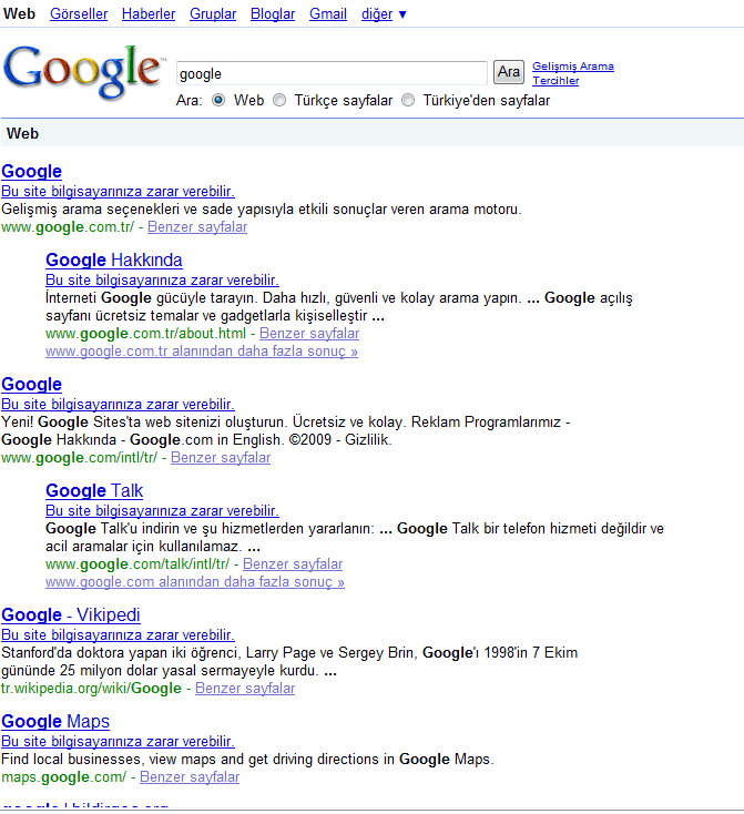Google delirdi :) Her Site Zararlı!