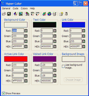Hyper Color Hyper Color download Web sitenizi tasarlarken site içinde kullanacağınız renkleri en uyumlu şekilde belirleyebilmenize yarayan ücretsiz bir renk seçici yazılım.