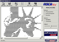 ASCII Art Machine ASCII Art Machine download Bitmap resimlerinizi ASCII karakterlere, yani yazı karakterlerinden oluşan resimlere çevirebileceğiniz bir program. Dili Almancadır.